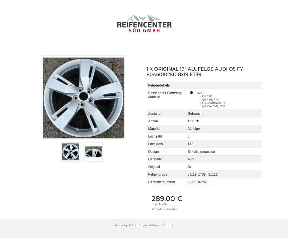► KOSTENLOSER VERSAND ◄ 1 X ORIGINAL 19″ ALUFELGE AUDI Q5 FY 80A601025D 8×19 ET39 _________________________________________________________ Felgendetails: Passend für folgende Fahrzeug Modelle: Audi – Q5 FYB – Q5 FYB, FYG – Q5 Sportback FYT – Q…